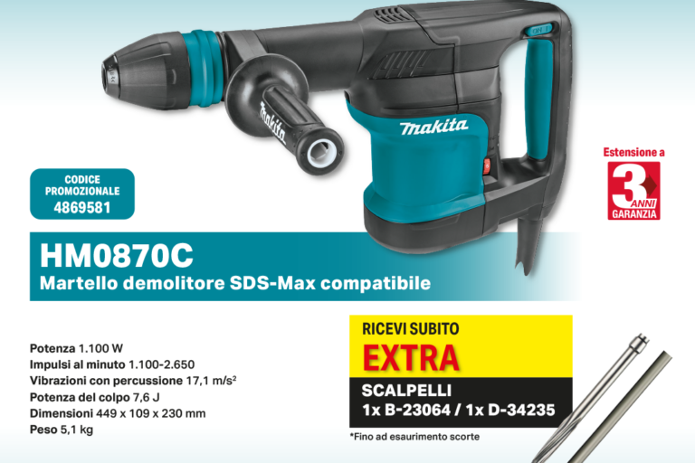Il martello demolitore Makita HM0870C è la soluzione perfetta per interventi di demolizione precisi e potenti. Compatibile SDS-Max, questo utensile combina prestazioni elevate a un’ottima maneggevolezza.