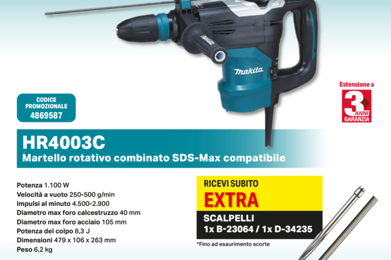 Cerchi un martello rotativo potente e affidabile? Il Makita HR4003C è il top della gamma per chi ha bisogno di forature impegnative in calcestruzzo e acciaio.