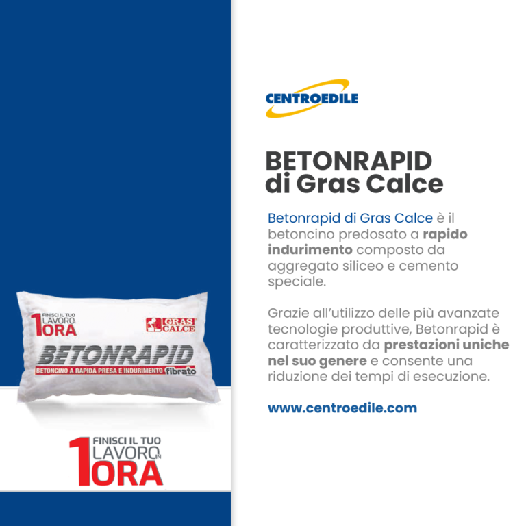 Betonrapid di Gras Calce è il betoncino predosato a rapido indurimento composto da aggregato siliceo e cemento speciale. Grazie all’utilizzo delle più avanzate tecnologie produttive, Betonrapid è caratterizzato da prestazioni uniche nel suo genere e consente una riduzione dei tempi di esecuzione.