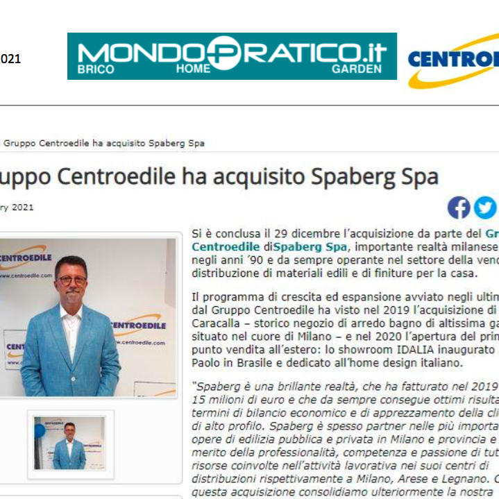 Il Gruppo Centroedile ha acquisito Spaberg Spa